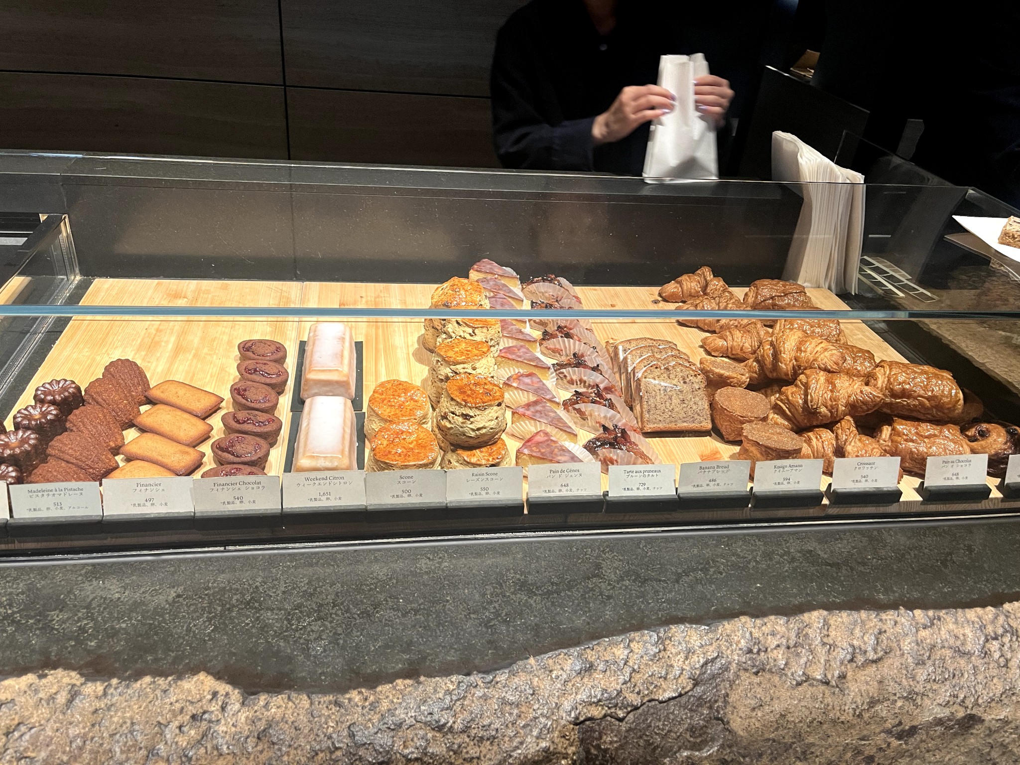 ケーキや焼き菓子類が並ぶショーケースは、土台が大きな岩になっており、温もりを感じられる色合いでありながらも触るとひんやりとした冷たさが感じられ、どんなお客様でも入りやすいような雰囲気とキリッとしまった高級感の両方を感じさせてくれました。