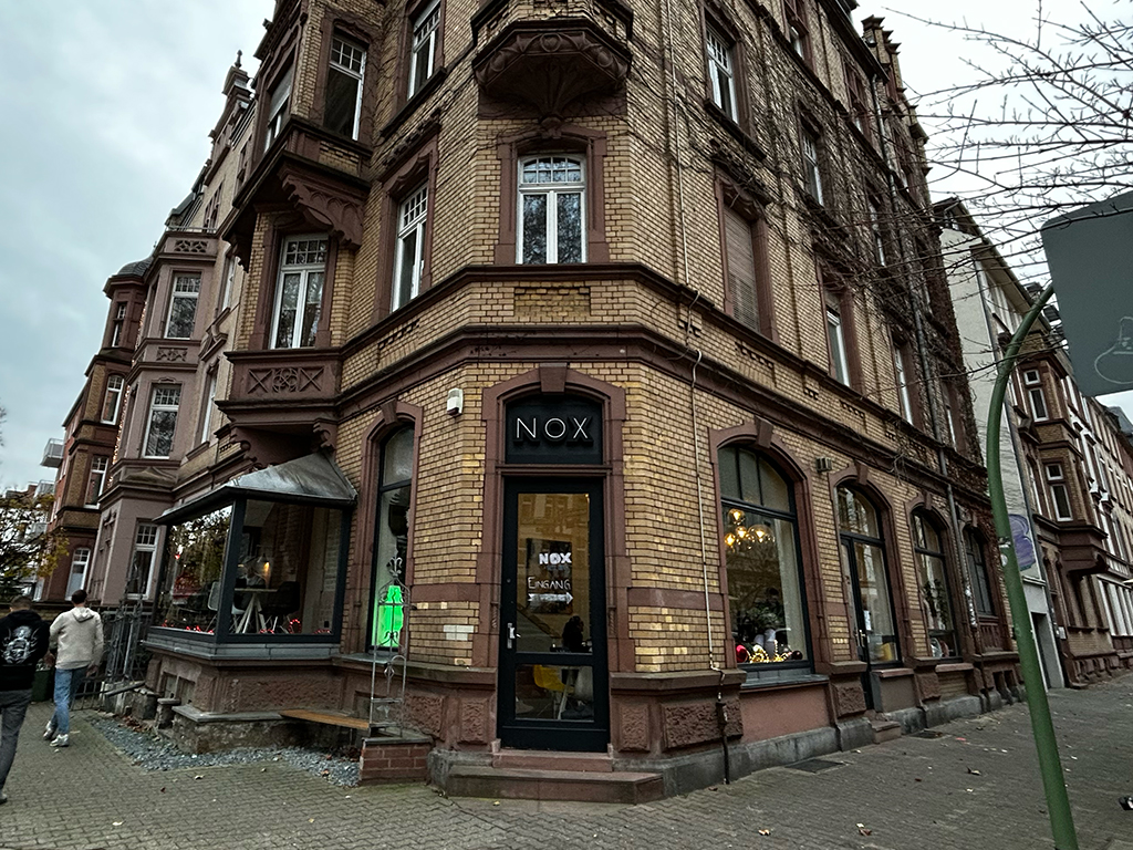 NOXの名前は、フランクフルトで親しまれてきたローカル屋台 “Wasserhäuschen Nox” に由来するとされています。また、オーナーが愛犬 Lenox(レノックス) の名前を気に入り、その愛称である “NOX” を採用したという背景もあるそうです。