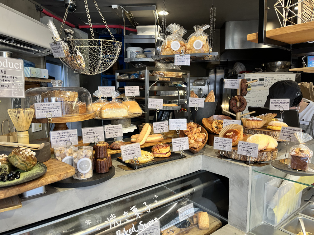 店内はコンパクトながら、パンや焼き菓子が見やすく並び、ショーケース越しに注文する動線がきれいですね。