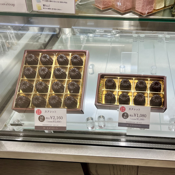 カヌレは 4個入 ¥918(税込)/ 8個入 ¥1,836(税込)のギフトセットがあるほか、通常のカヌレよりもさらに小ぶりなカヌレである「カヌレット」のギフトセットが 8個入 ¥1,080(税込)/ 16個入 ¥2,160(税込)で販売されています。