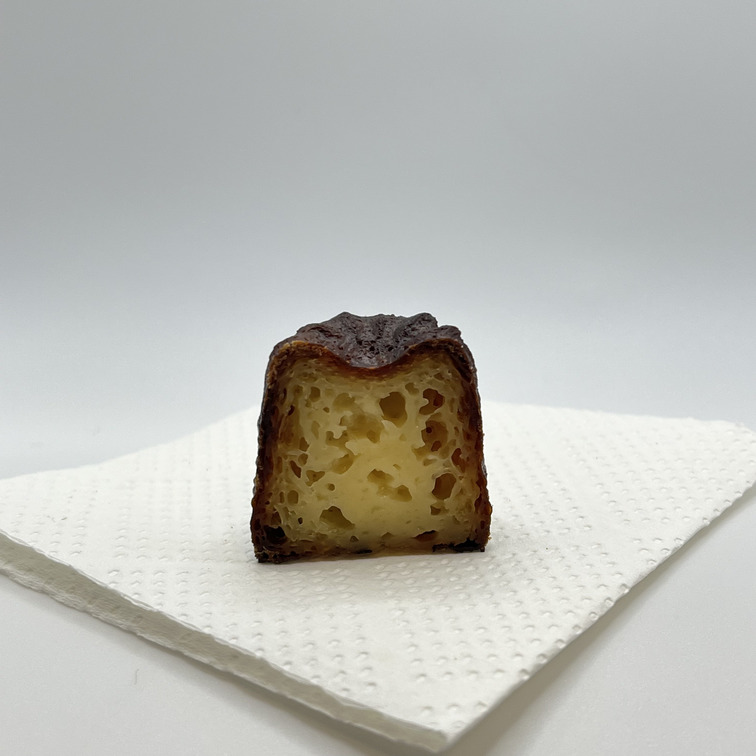 外はガリっと中はしっとりもっちり食感のカヌレとなっています。