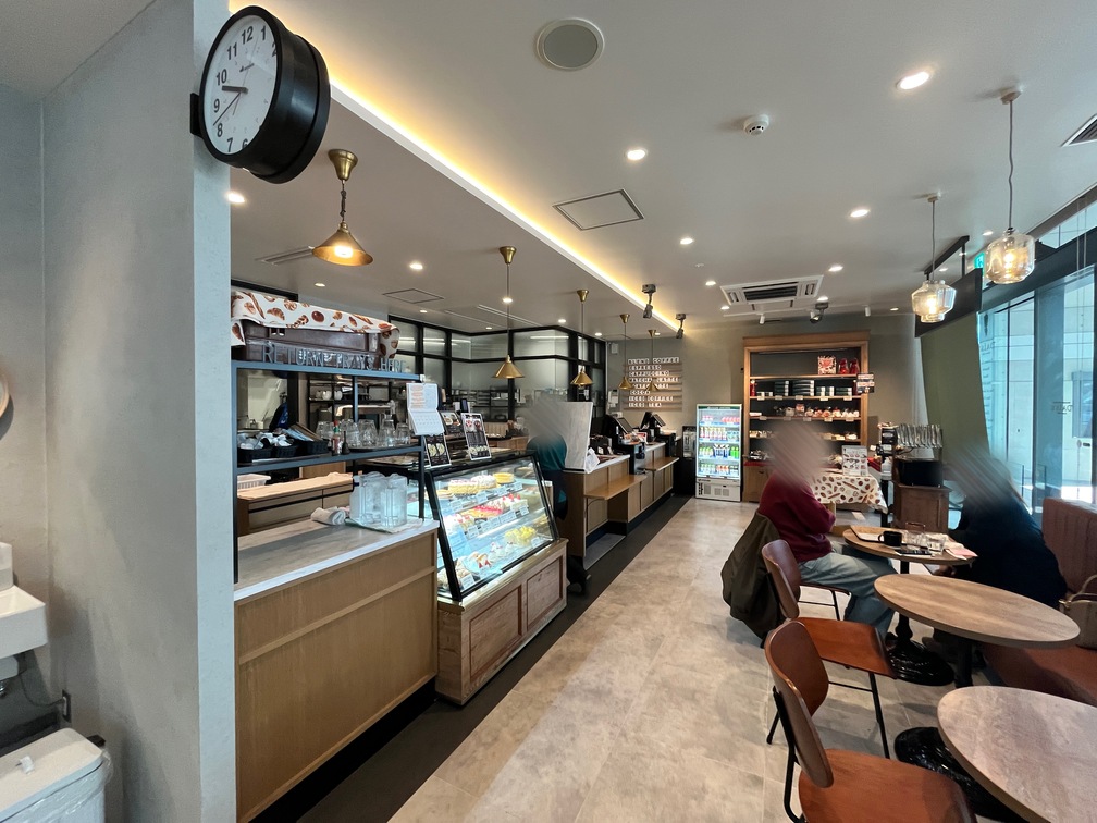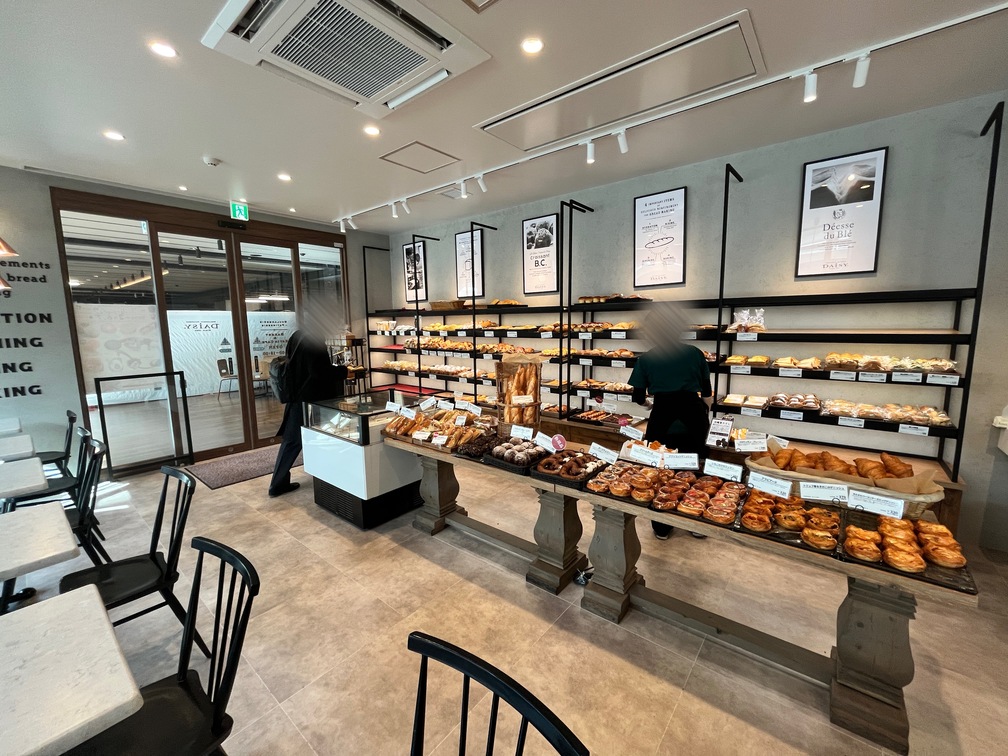 お店は明るいショーケースにパンやスイーツがぎっしり並んでおり、香ばしいパンの香りが漂います。