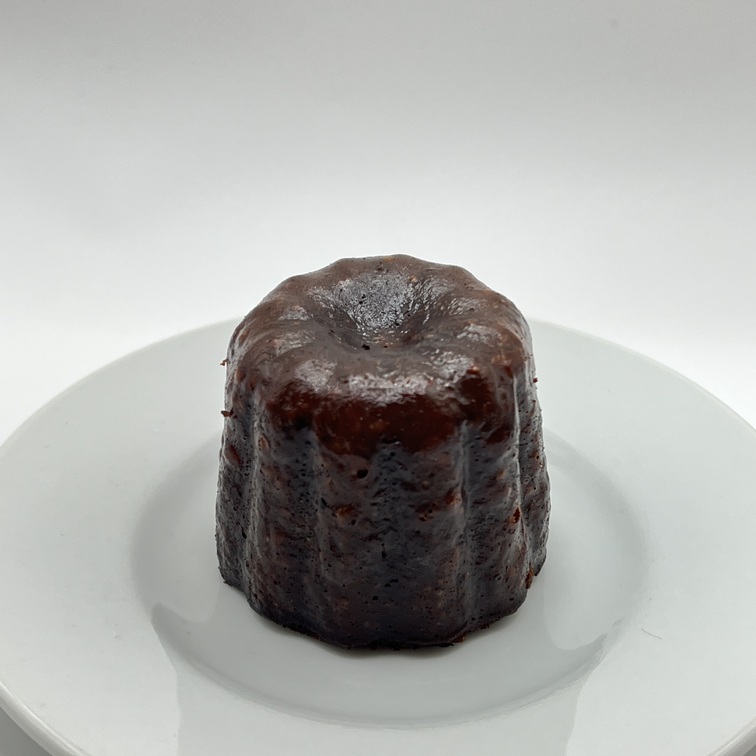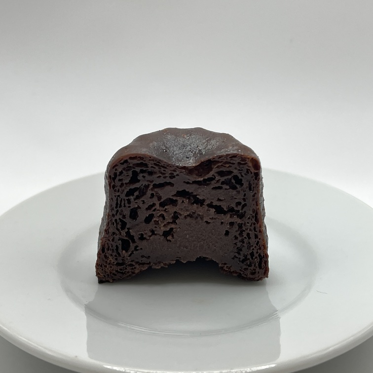 ショコラカヌレは、底部が少しザクザクとした食感となっており、中の生地はむっちりとした重量感のある食感となっています。