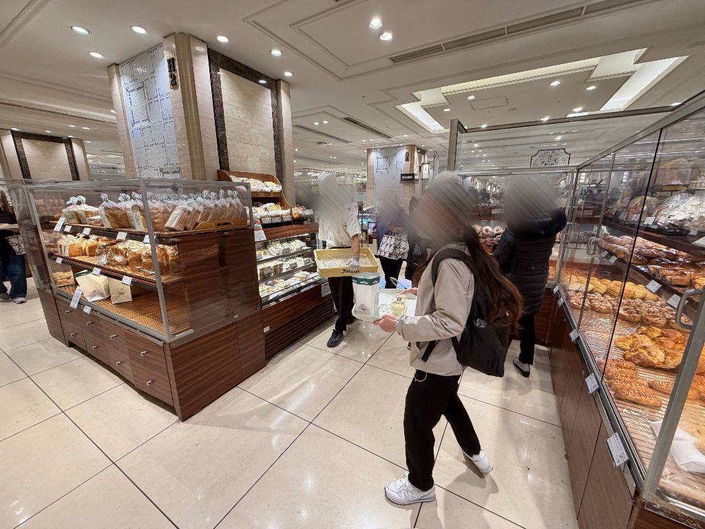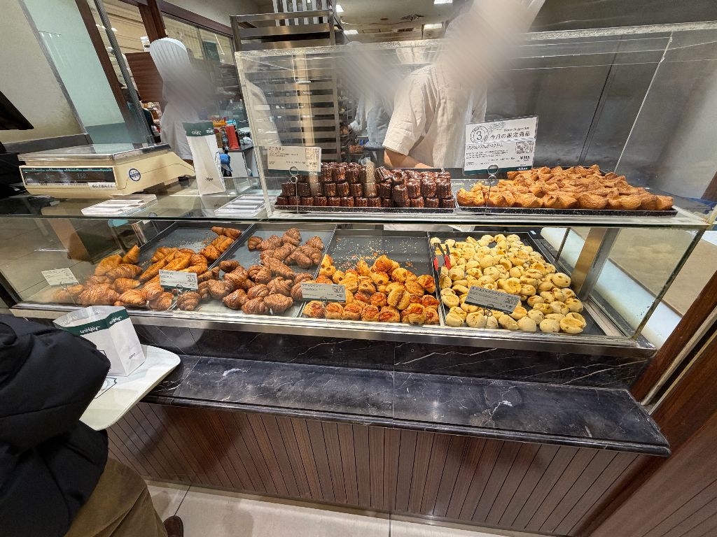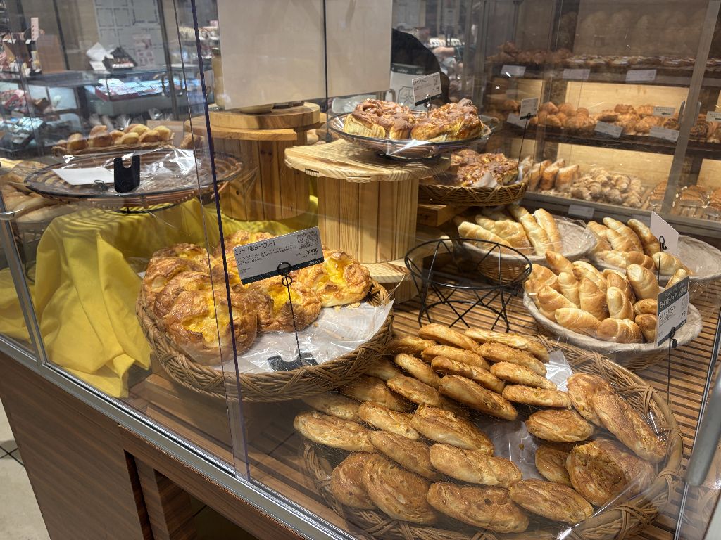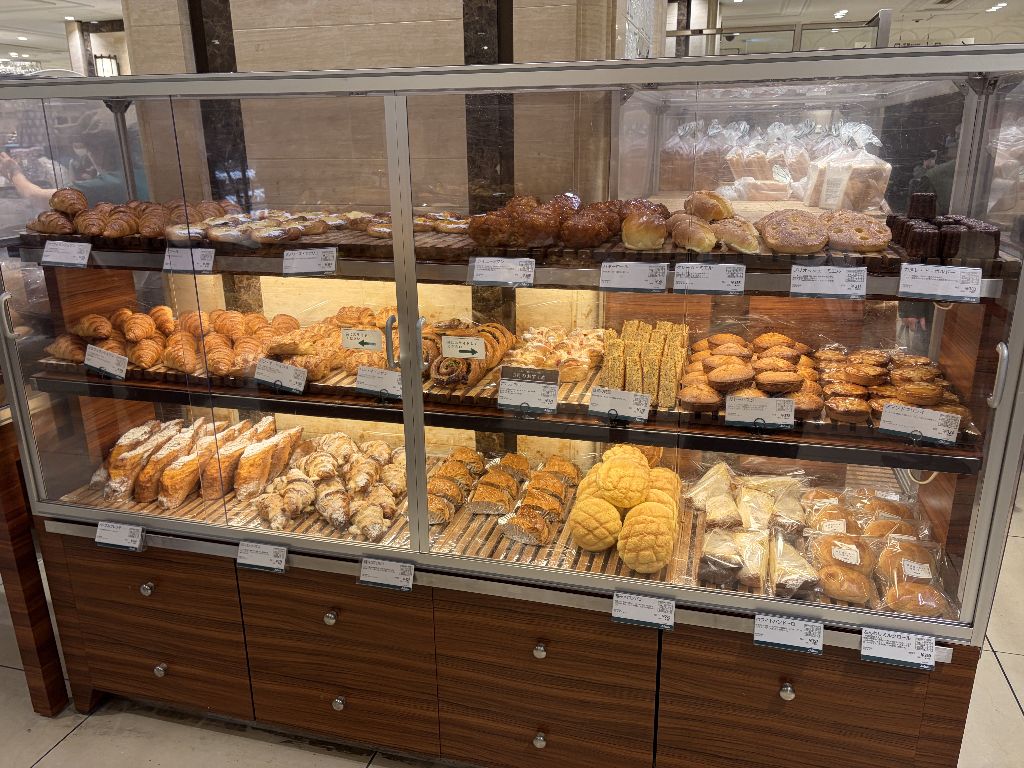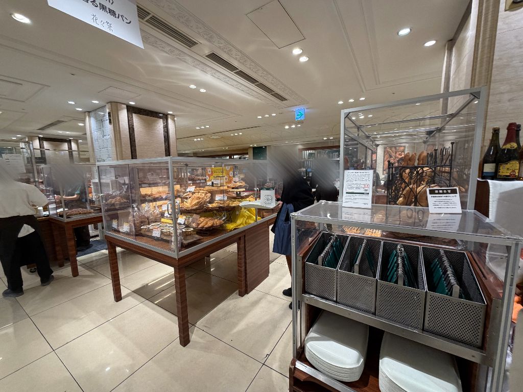 店内にはガラスケース越しにさまざまなパンや焼き菓子が並び、デパ地下らしい活気とともにパン屋特有の温かい雰囲気が漂います。