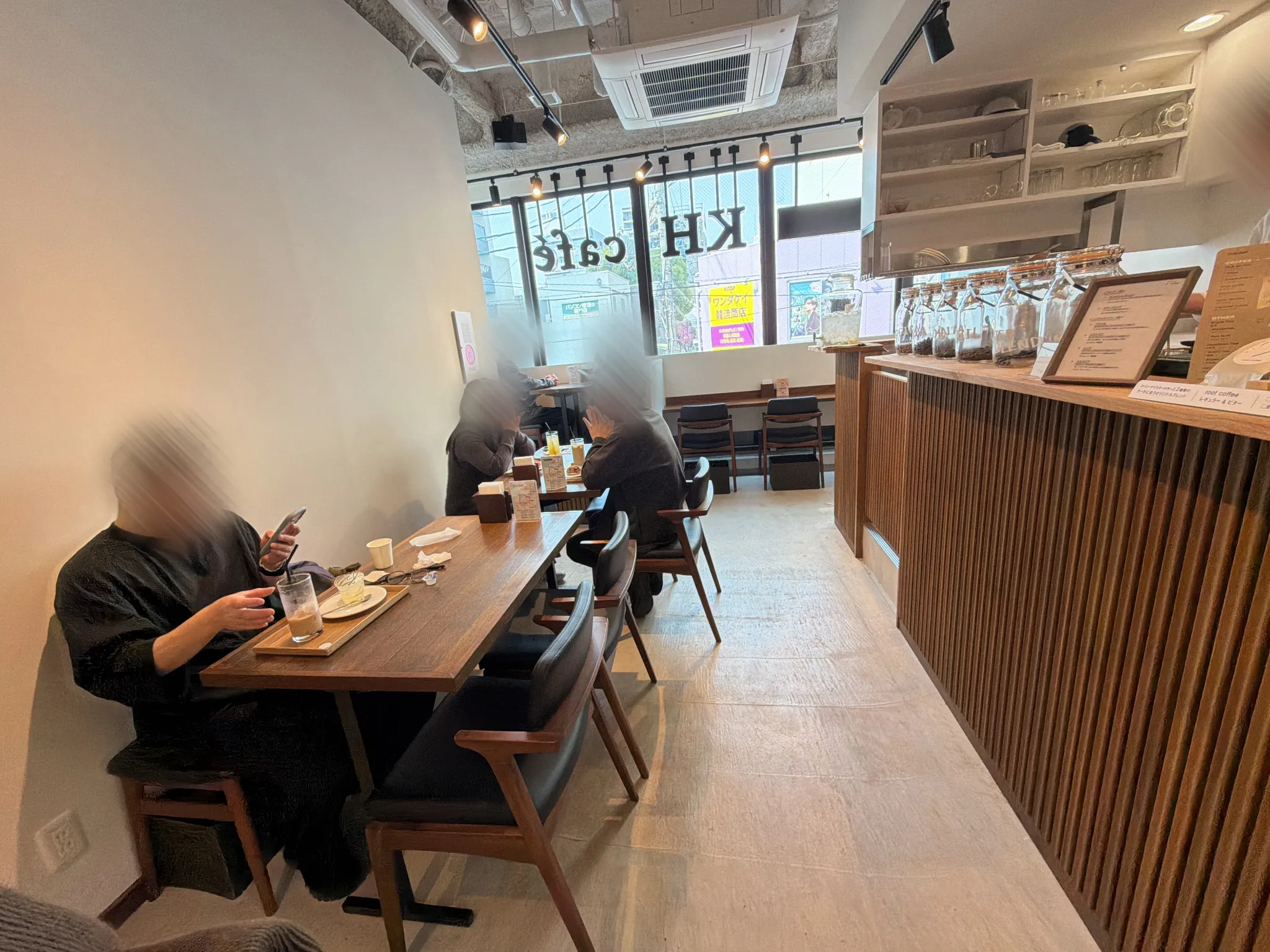店内に入ると、外の賑やかさとは対照的に、落ち着いたナチュラルモダンな空間が広がります。