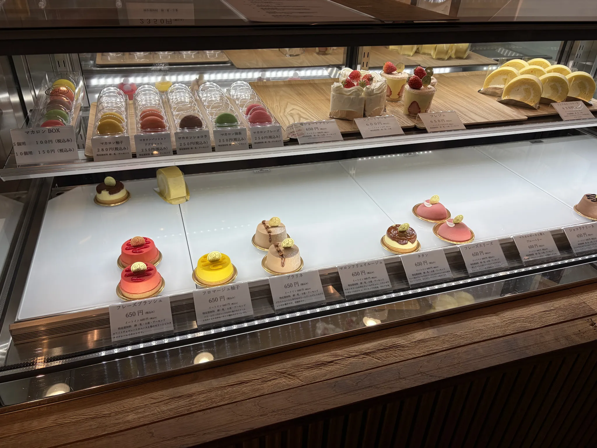 白を基調とした内装に木の温もりが加わり、ショーケースには宝石のように美しいケーキがずらりと並びます。